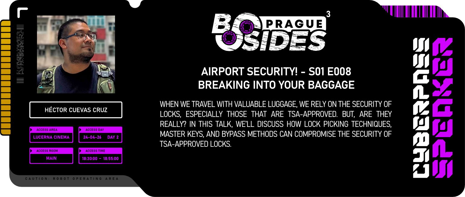Abstract: When we travel with valuable baggage, we rely on the security of locks, especially those that are TSA-approved. But how secure are they really? In this talk, I’ll present a research on the vulnerabilities and bypasses of these locks and their embedding into the baggage, covering the most common models as well as the newer TSA008. We’ll discuss how lock picking techniques, master keys, and bypass methods can compromise the security of all TSA-approved models, potentially putting our belongings at risk.